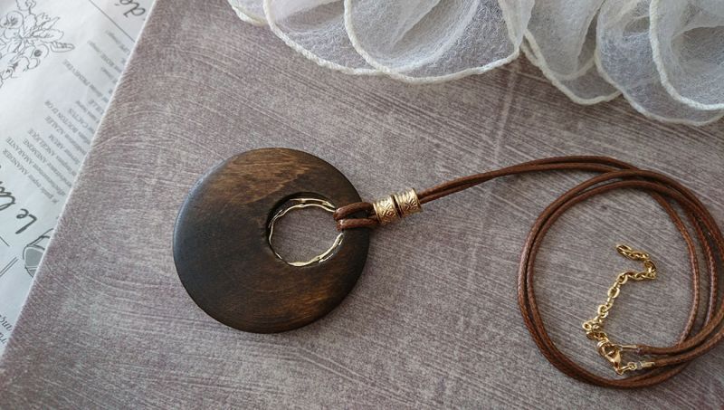 アクセサリー ネックレス 紐 コード 木目 ウッド 木製 金属 ギフト 日本製