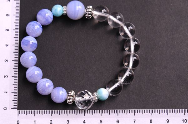 【天然石デザインブレス】ブルーレースアゲート×世界三大ヒーリングストーン☆ラリマー -LR2- [18082]〜 Blue Lace Agate 〜☆ブルーレースアゲートアゲート(メノウ)の中でも淡い青色と白色の縞模様のあるものをブルーレースアゲートと呼びます。 高ぶりを鎮め穏やかでやさしい気持ちを呼び起こすと云われています。また、感情や思考の表現を助けコミュニケーションを円滑にするとも云われます。 〜 Larimar 〜 【世界三大ヒーリングストーン】 ☆ドミニカの至宝 ラリマー☆パワーストーンの世界で絶大な支持を受けるこの石は、カリブ海に浮かぶ島・ドミニカ共和国でしか採掘されていない天然石で、見る者を一目で癒すほど柔らかく穏やかなブルーが印象的。その希少性と絶対的な美しさから、国内のみならず世界中の天然石ファンから愛されています。◆ギフト対応(無料) (*ケースやリボンは季節により変わる場合がございます。) ■ Product Details ■サイズ内周(約16cm)素材・成分天然石(ブルーレースアゲート/ラリマー)金具素材(18KGP)重量約28g付属巾着ポーチ注意事項天然のブルーレースアゲート&ラリマー使用のため色合いは一点一点異なります。画像は参考までにご覧くださいませ。発送即納ブレスレット アクセサリー ブルーレースアゲートラリマー 天然石 パワーストーン ヒーリングストーン ギフト プレゼント Larimar ラリマー☆天然石 パワーストーン☆