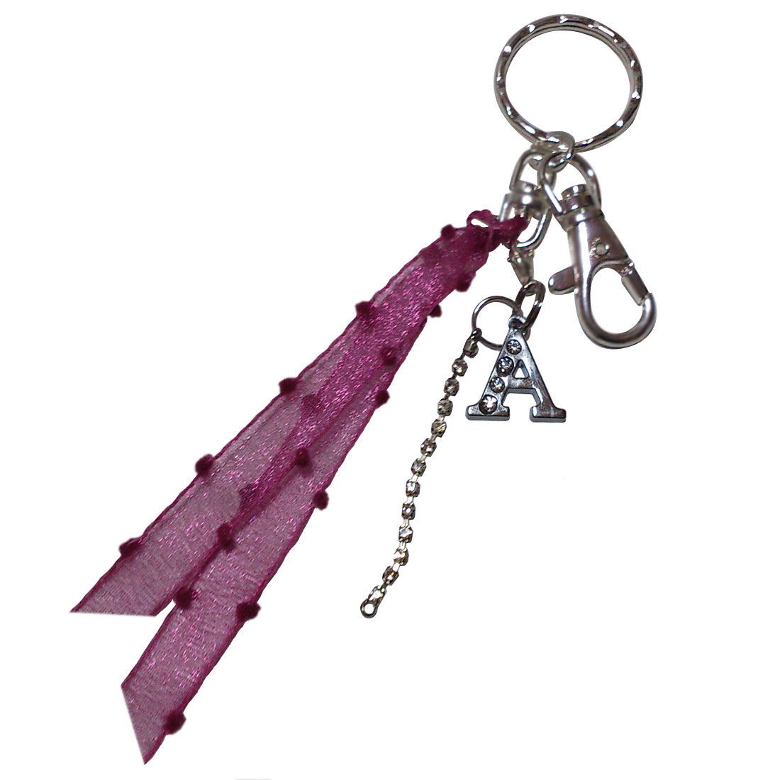 キーリング キーホルダー バッグチャーム イニシャル ラインストーン リボン