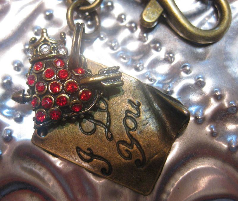 王冠を戴き矢の刺さった赤いハートと、"I Love You"と刻字されたメタルプレート。