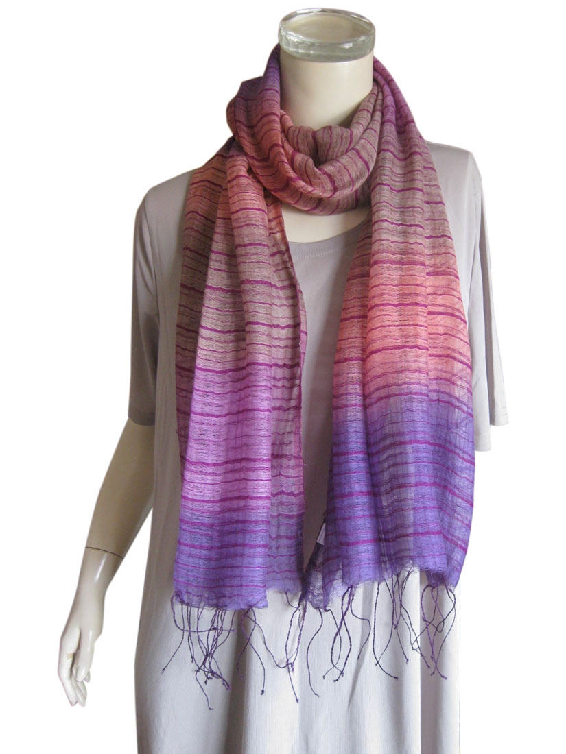 【薄手ストール】 2枚重ねシルク混 ストライプ グラデーションストール 2色 [1362799538] シルク混の2枚重ねでふんわり♪ エスニックなストライプ&グラデーションストール☆ 柔らかな風合いの、極薄シルク混の同柄生地を2枚張り合わせました。 カラーはパープル系グラデーションとオレンジ系グラデーション。 コーデを深みのある大人の雰囲気に仕上げてくれます。 コンパクトにバッグに入る軽くソフトな肌触りのストールです。 1枚プラスするだけでコーディネートの華やかなアクセントに♪ 2枚重ねシルク混 ストライプ グラデーションストール 2色サイズ 約50×170cm+フリンジ素材 コットン(綿)60% シルク(絹)20% アクリル20% カラー パープル、 オレンジブランド名 flower storm生産地 インド ストール一覧☆ ストール スカーフ マフラー コットン シルク 絹 ストライプ 春夏秋 UV 日除け 紫外線対策 冷房対策