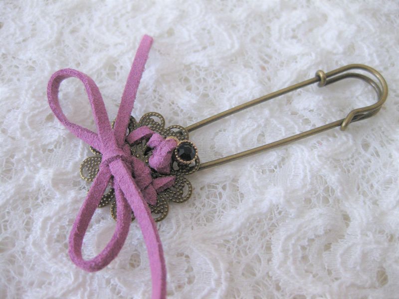 カブトピン 安全ピン スカーフ留め アクセサリー 革紐 レザー リボン