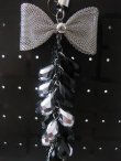 メタル製ビーズとリボン、ブラック×シルバーチェーンのロングネックレスです。