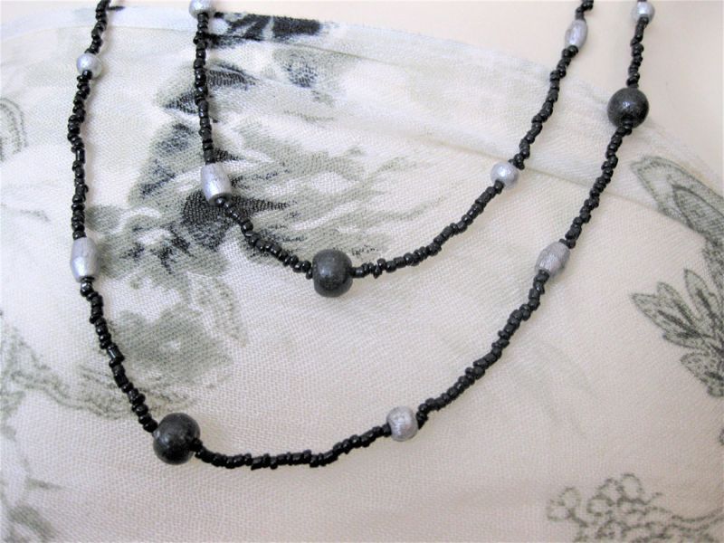 ブラックとシルバーのウッドビーズを連ねたシンプルクールなネックレス。