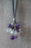 ◆flower storm◆ 2月誕生石アメジストなど5種21石の天然石が輝く 革紐ロングネックレス ケース付 |