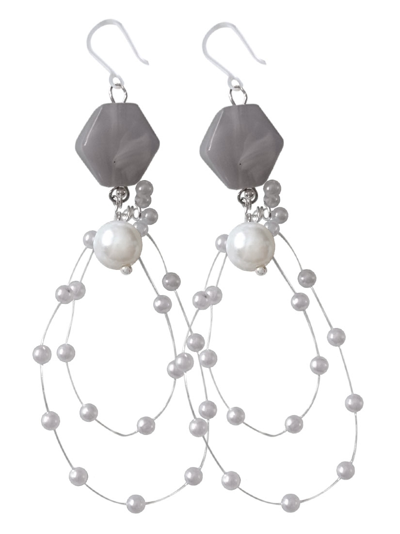 | カラー | アクリルビーズ(ライトグレー) パール(ホワイト、グレー) ピアスフック(クリア)金具(シルバー) |