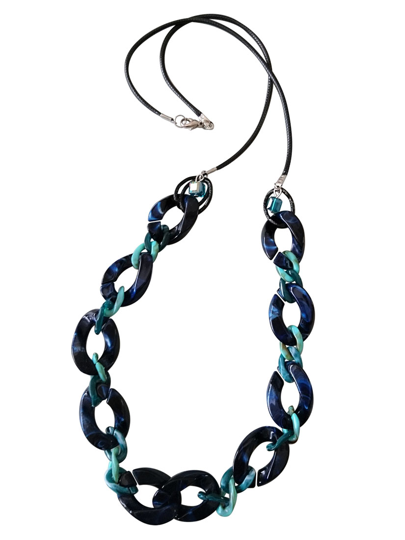 マーブル柄のアクリル製チェーンパーツを使用したロングネックレス。