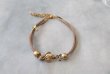 猫の左右にマットゴールドのメタルビーズを配した上品な革紐ブレスレット。