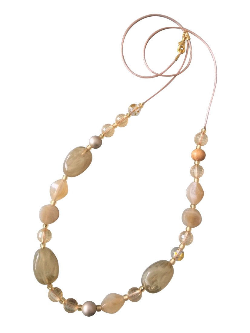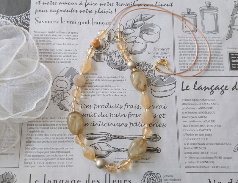 色やサイズ、素材の異なるベージュ系ビーズを使用。