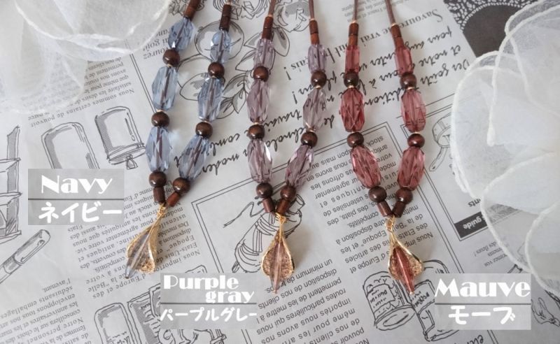 クリア多面カット&ウッド2種のビーズとメタルフラワー百合 3色
