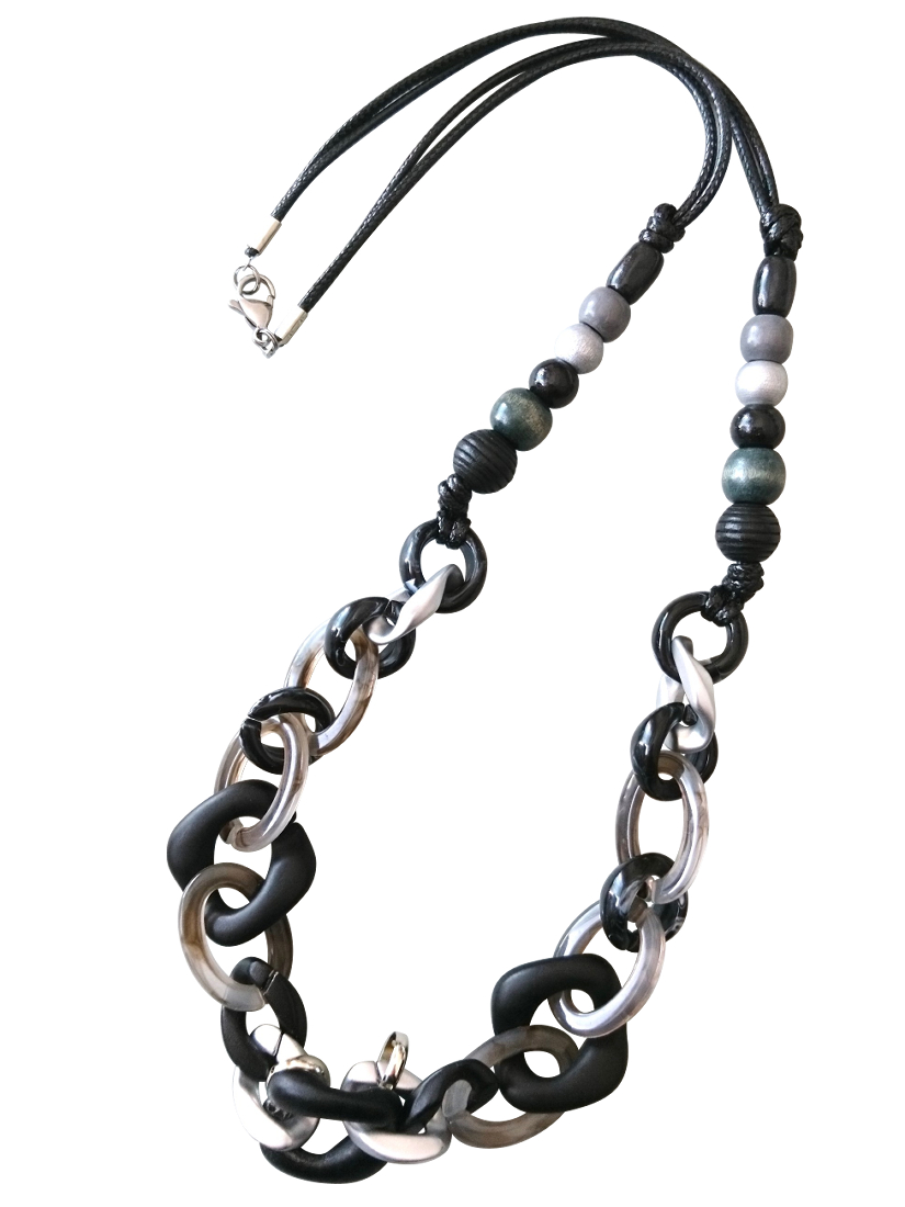 軽やかなアクリルチェーン&ナチュラルウッドビーズの大ぶりネックレス☆