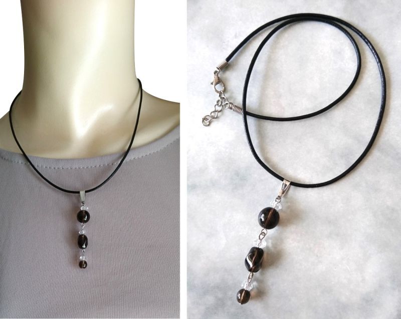 アクセサリー ジュエリー レザーネックレス 革紐ネックレス 天然石 半貴石 パワーストーン ナチュラルストーン スモーキークォーツ 煙水晶 天然水晶 本水晶 メンズ レディース 上質 高級感 日本製