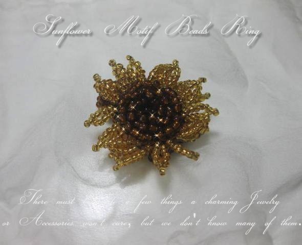 | 指先に夏♪ひまわりモチーフのエレガント ビーズリング |