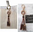 スウェード調コード使用のメタルリングチャームとタッセル ビーズ飾り