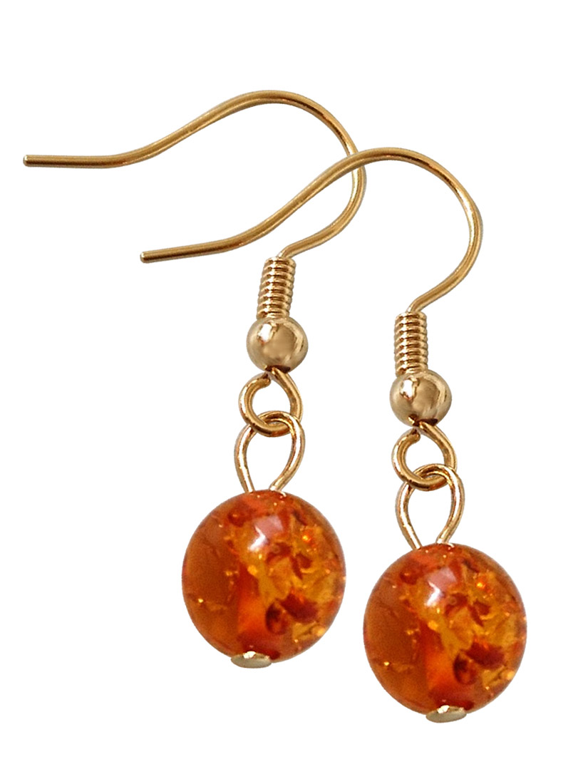 天然琥珀 8mm玉 K16GPフックピアス