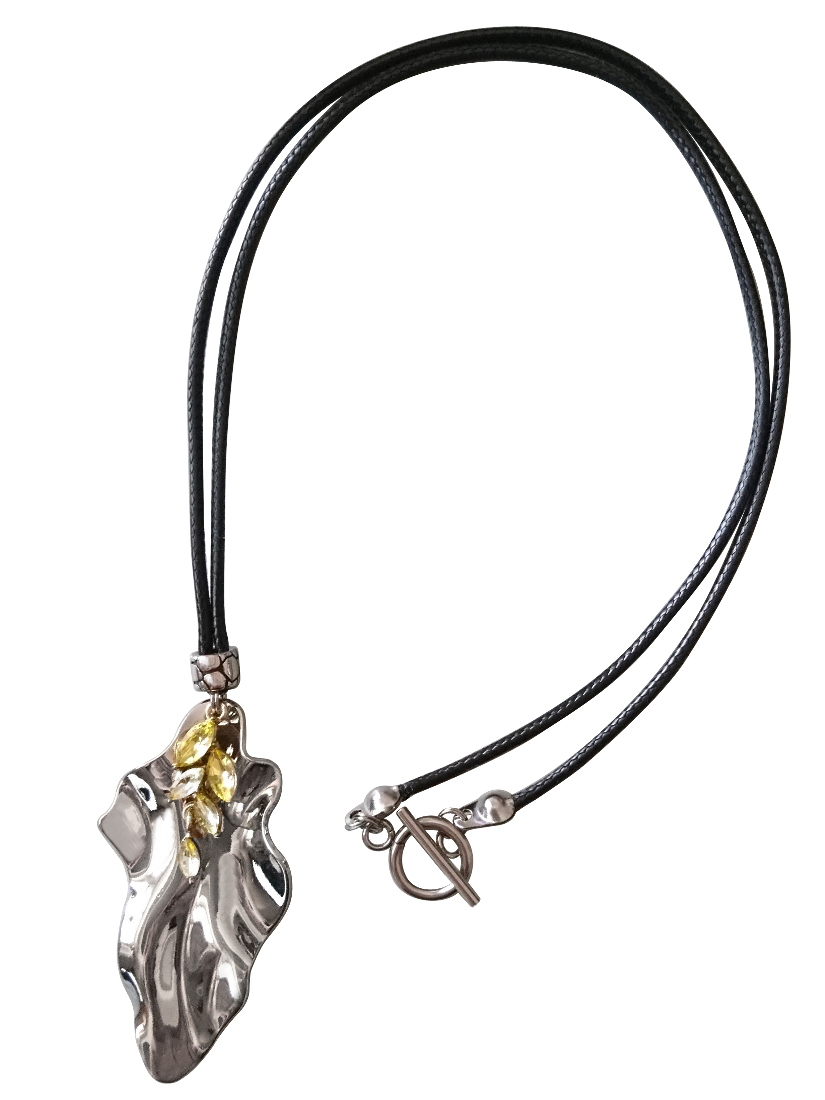 メタル&ガラスストーン 二つの輝くリーフのネックレス☆