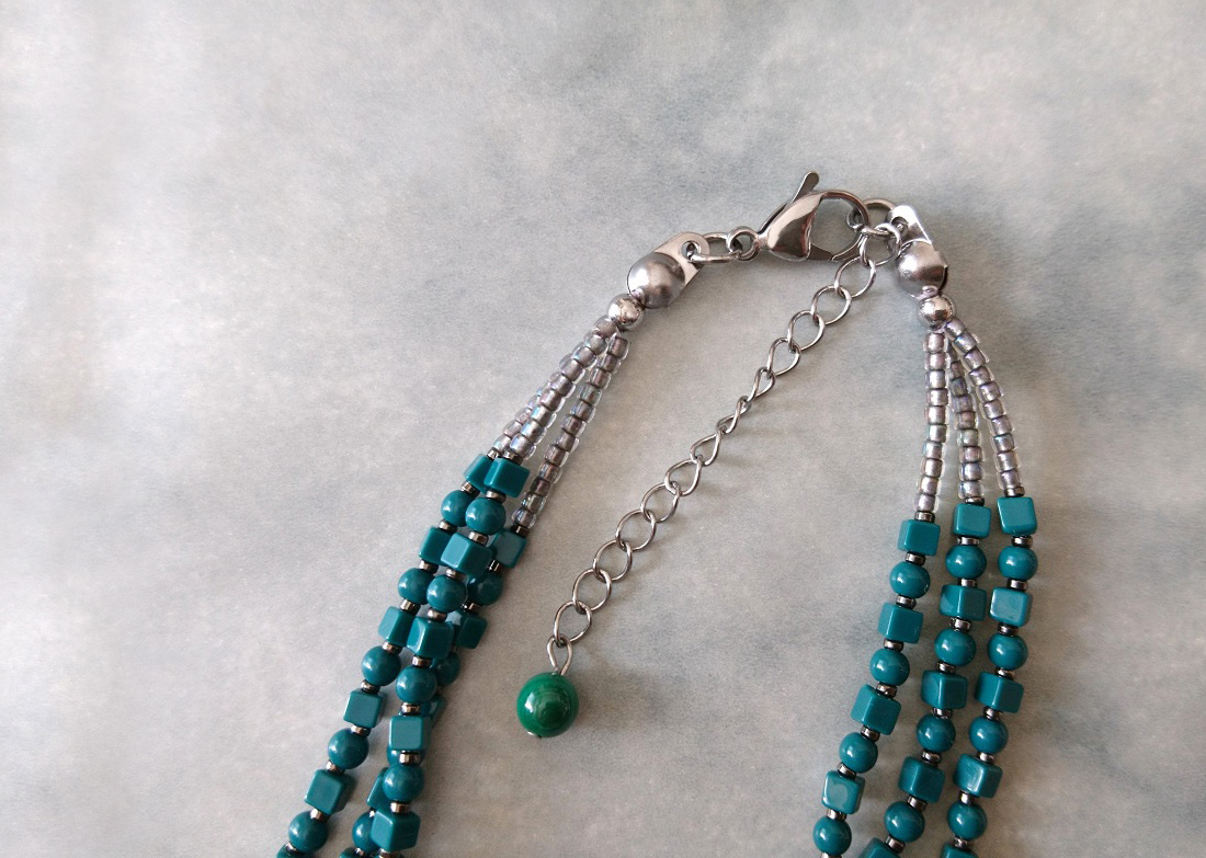 3種の異素材ビーズを組み合わせた3連ネックレスです。