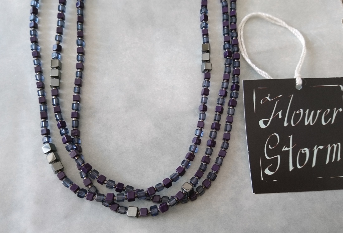 3種の異素材ビーズを組み合わせた3連ネックレスです。