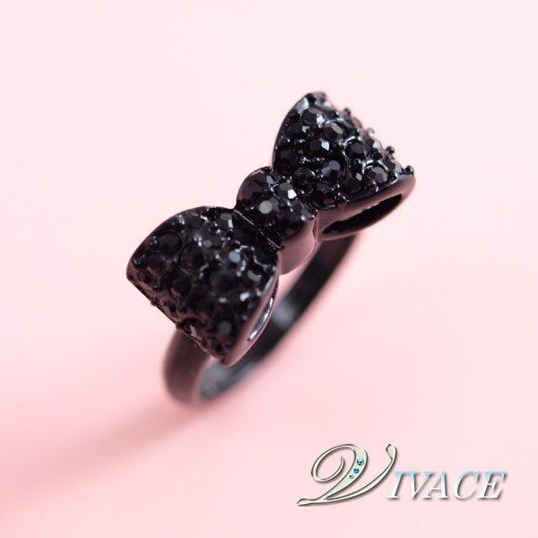 ≪VIVACE≫大人気!ブラックぷっくりパヴェリボンリング!