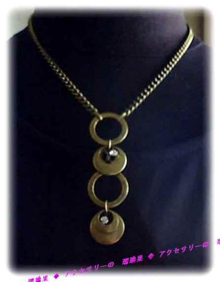 ■リングモチーフ*ラインストーンブロンズカラーネックレス