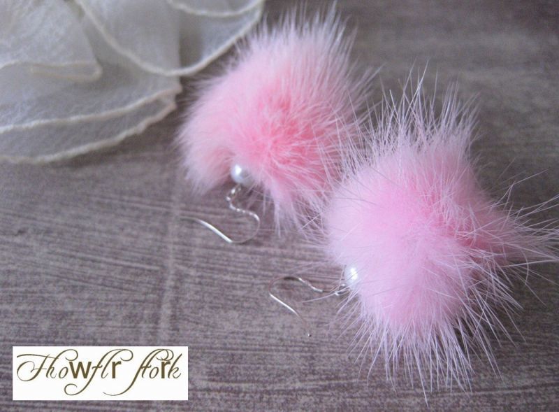 【送料無料】【ピアス】◆flower storm◆ミンクファー&パール SV925ピアス 秋冬デザイン 3色(アクセサリー レディース)