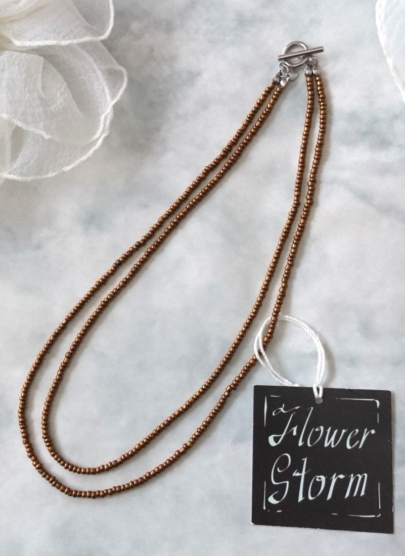 【送料無料】◆flower storm◆長さ42cm アンティークブロンズのガラスビーズ2連ショートネックレス 金属アレルギー対応 ( ステンレス アクセサリー チョーカー 日本製 メンズ レディース) アクセサリー 日本製 メンズ レディース) [戻る]