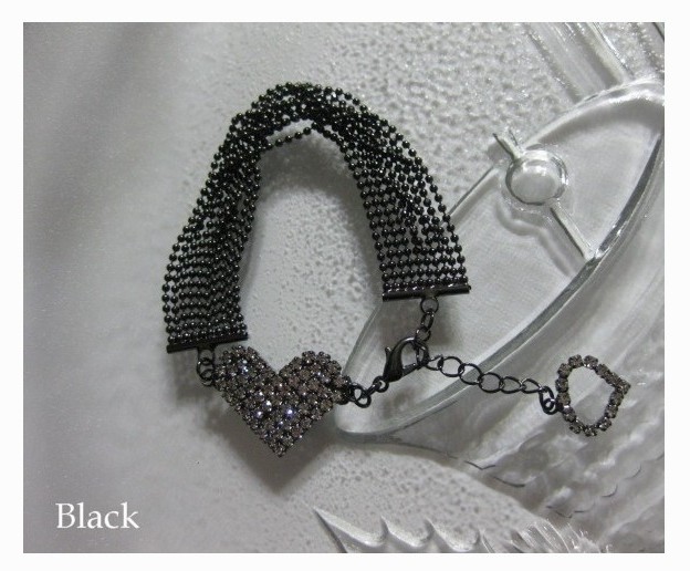 【日本製】 視線を釘付け♪ ラインストーンのハート&10連ボールチェーン デザインブレスレット ≪ゴールド/ブラック≫【メール便対応】