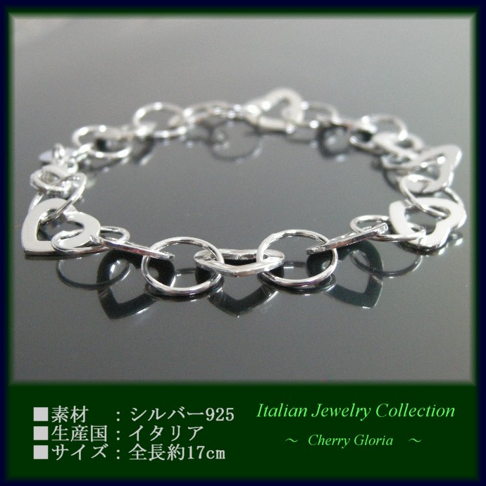 イタリア製の女性らしく愛らしいハートモチーフブレスレット