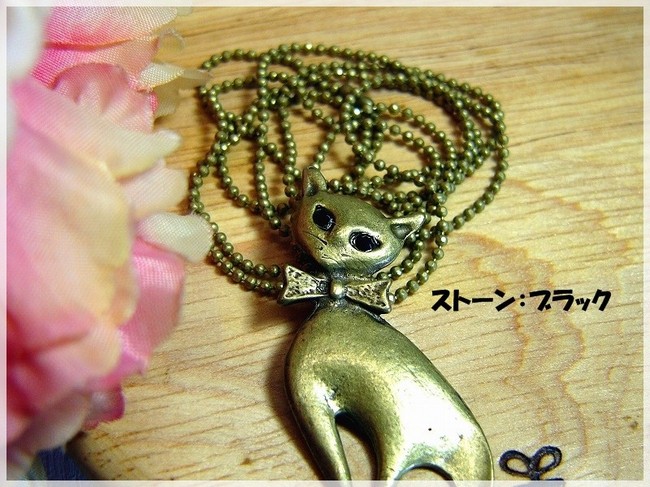 かわいいネコちゃん アンティークカラーのネックレス 2カラー
