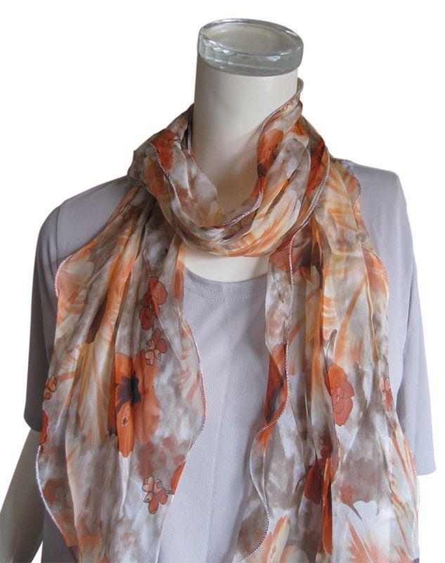 【薄手ストール】シルク100%シフォン 水彩画風ぼかし花柄ストール 3色