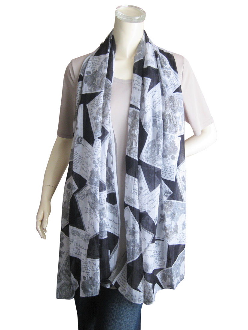 【薄手ストール】クラシカルな雰囲気漂う♪ビスコース100%ポストカード柄ロングストール (紫外線対策 UV対策 日除け 冷房対策)