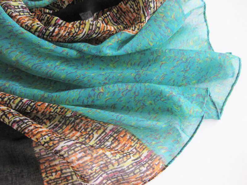 【薄手ストール】深く印象付ける色柄♪ ビスコース100%大判ストール