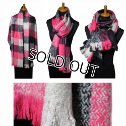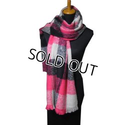 【秋冬ストール】柔らかさ最上級♪パステルモールヤーン大格子柄 大判ストール ☆ピンク 593132601 [181434]
