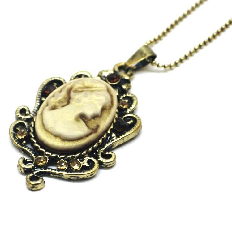 カメオ風モチーフが上品な、アンティーク仕上げのネックレスです。