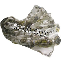 ストール スカーフ マフラー シルクシフォン 時計柄 チェーン柄 クラシカル