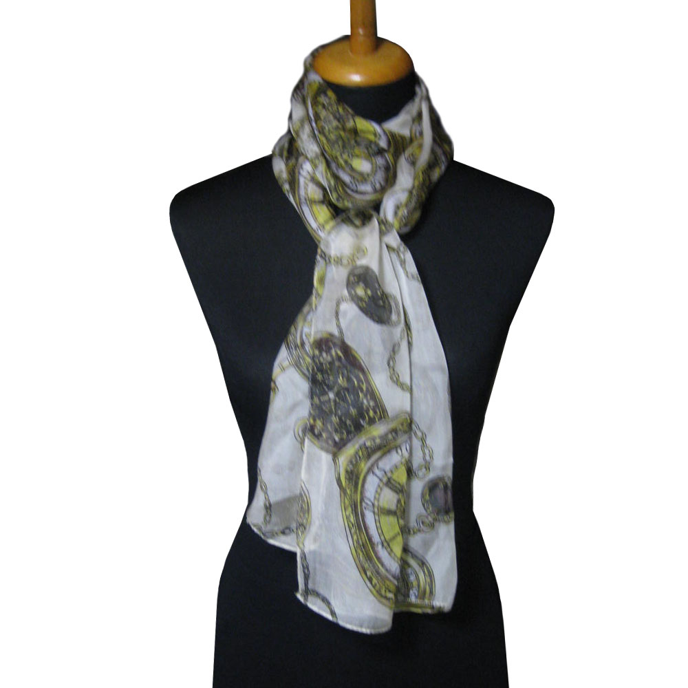 | シルク100%シフォン クラシックな時計柄のストール | |