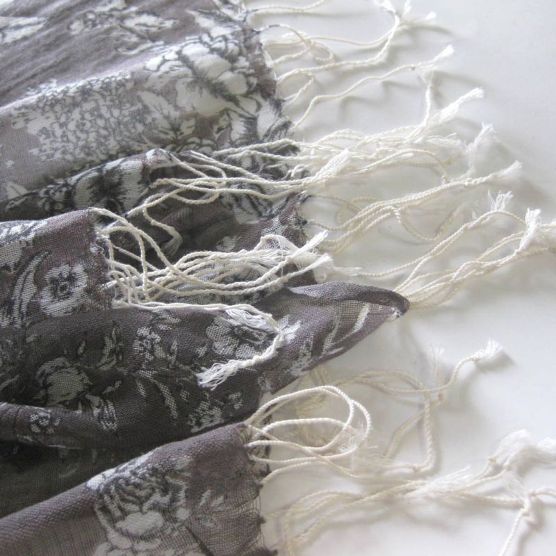 薄手 ウール混 大判ストール シンプルシックな花柄♪ 2色