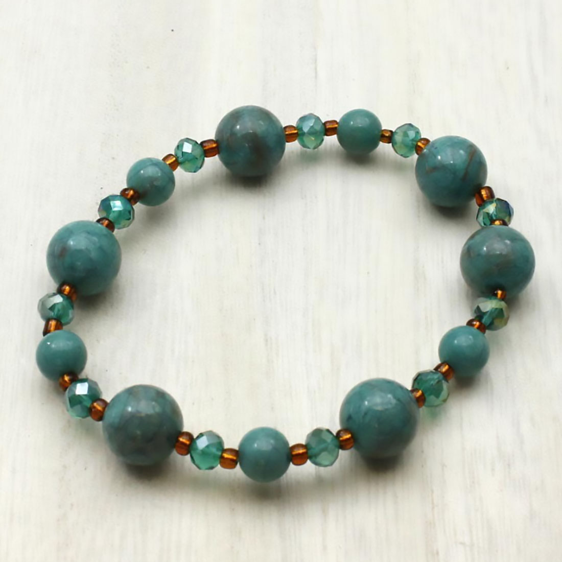 | ターコイズブルー×ブラウンビーズのシンプルデザインブレスレット | |