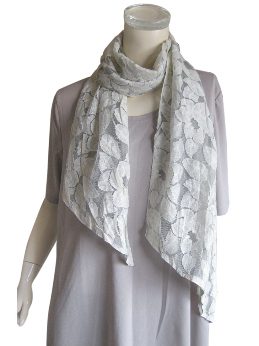 【薄手ストール】コットン100% 2枚重ねのフラワーレース ストール 3色 (UV 紫外線対策 日除け) [181601]