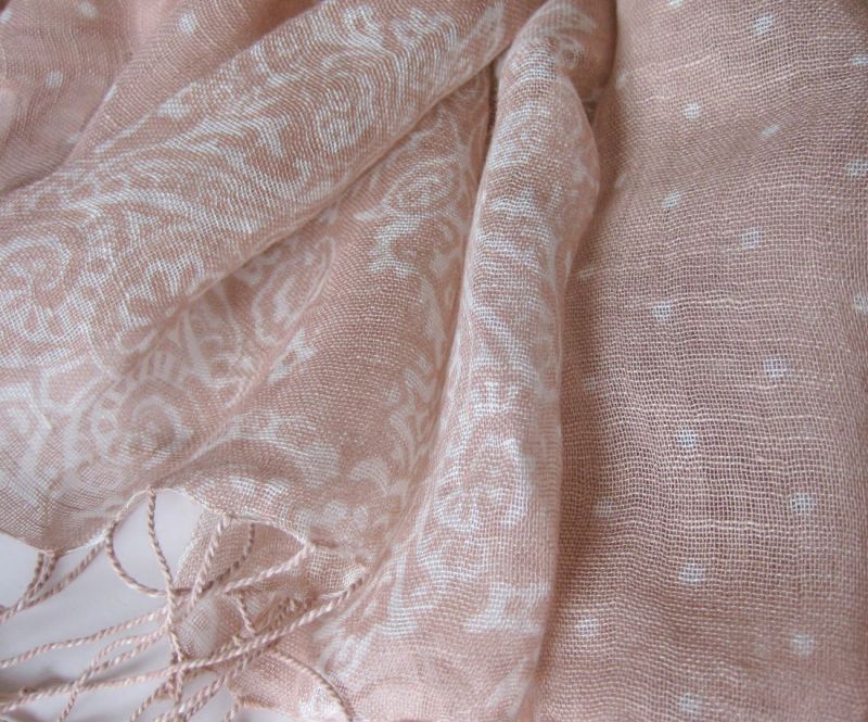 麻51% 綿49% ダマスク&ドット柄のエレガントなストール 洗濯可能