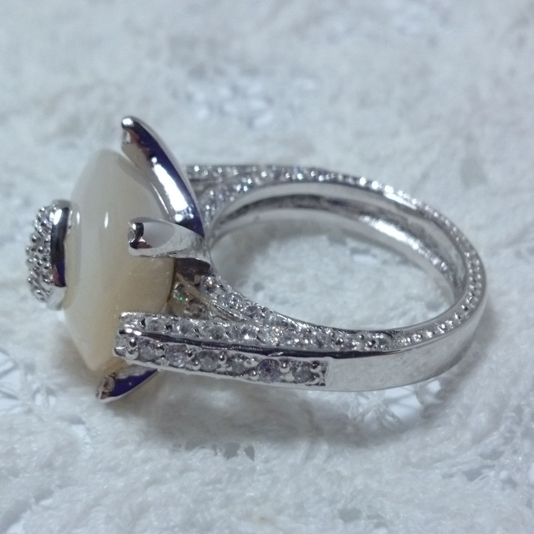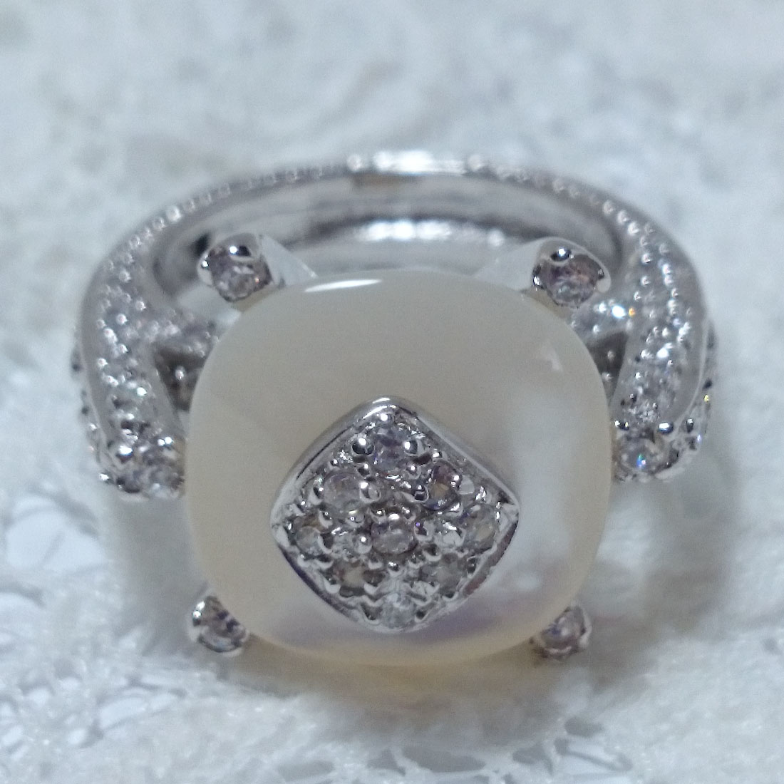 【イタリア製】【SILVER925】デザインアクセサリー◆シルバー925 天然石 CZリング*Elegant Style*(白蝶貝 マザーオブパール) [1362799587]