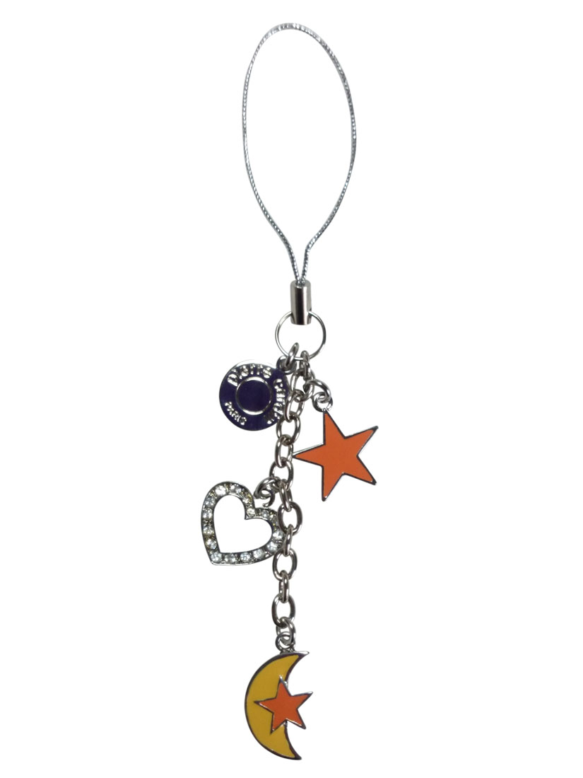 チャームストラップ(イエローにオレンジの月星&ハート)