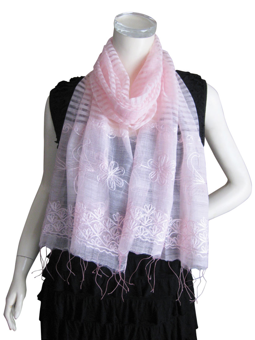 | 豪華な刺繍のシルク・コットン素材プレーンカラーストール | |
