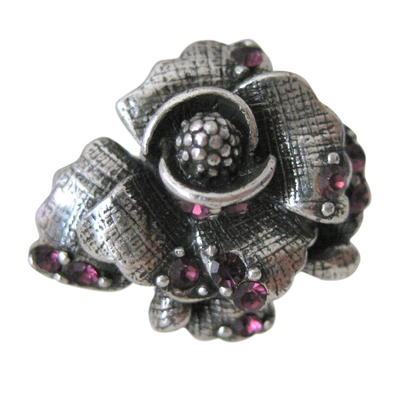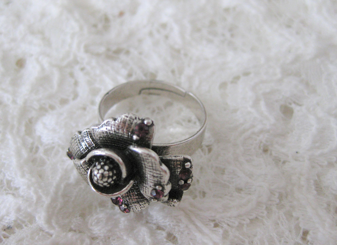 ラインストーン使いのフラワーデザイン ブラスリング。