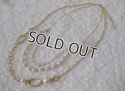 華やかさを演出するパールとチェーンの3連ロングネックレス。