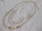 パールとチェーンの3連ロングネックレス☆ミンクファー付
