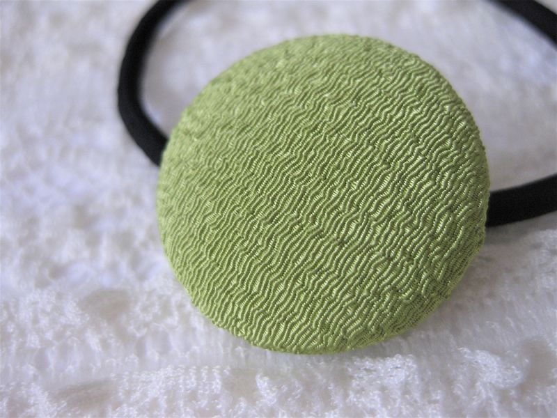 ヘアゴム ヘアアクセサリー ヘアポニー 髪飾り ちりめん 和風 若草色 丸 サークル