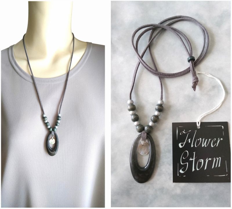 | ◆flower storm◆ 上質チャーム使いの大人シックな革紐ロングネックレス 2型 | |