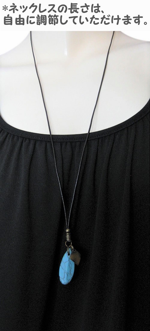 【送料無料】【レザーネックレス】◆flower storm◆長さ約4cm 大きめターコイズブルー雫型ストーンの本牛革ネックレス (オリエンタル エスニック レディース/メンズ) [1362799277]