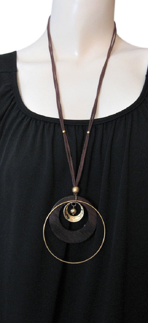 直径6.2cm 大きめウッド&メタルリングのスタイリッシュなネックレス